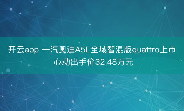 【太平洋汽车 新车频谈】近日,一汽奥迪 A5L 全域智混版 quattro 认真上市,心动出手价为 32.48 万元。行...