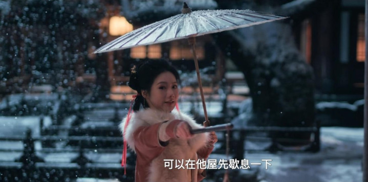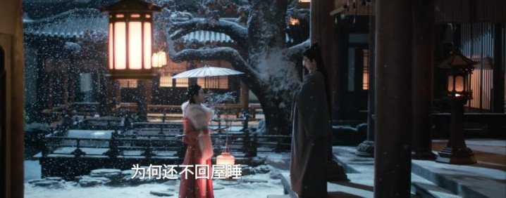 无处可去的他只可独自一东说念主站在寒风中看雪,此时茯苓出现。