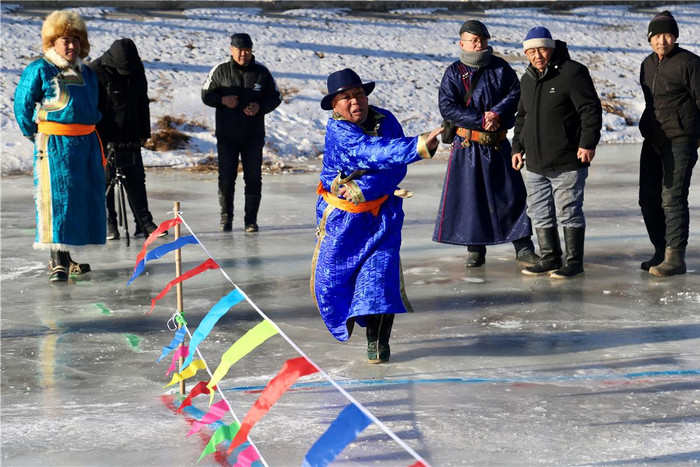 “冰上阿日嘎是我从小玩到大的冰上运动,今年比赛参加的人比去年的多,现场很热闹,说明人们很喜欢这项传统体育运动。”已经参加了多届冰上阿日嘎的选手呼斯楞说。