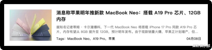 这也使 MacBook Neo 成为近些年来、苹果在中低端市集为数未几的奏效方案之一。