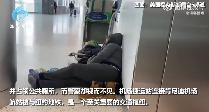 据美国《纽约邮报》网站19日报道,美国纽约肯尼迪机场的捷运站已成为无家可归者的聚集地,他们向旅客乞讨,并占领公共厕所,而警察却视而不见。
