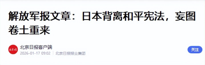 眼下北约正因为格陵兰岛的事闹得焦头烂额,日本也在亚太地区主动挑事。这种情况下,1月17日《解放军报》发了一篇重要文章,再次严肃警告日本,别想着加速松绑军事力量。
