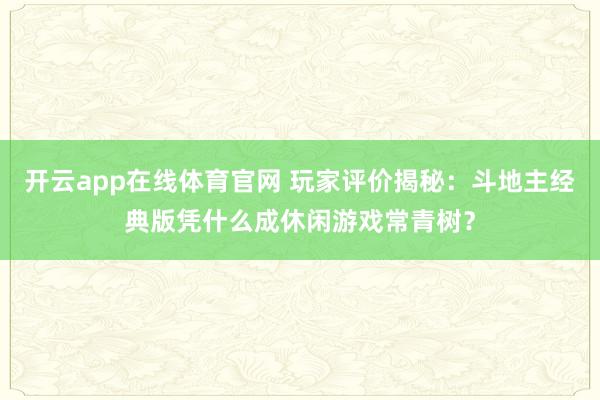 从玩家评价看斗地主经典版:为什么它能成为休闲游戏的“口碑常青树”? “真正耐玩的游戏,玩家评价里藏着三个不显眼的细节——...