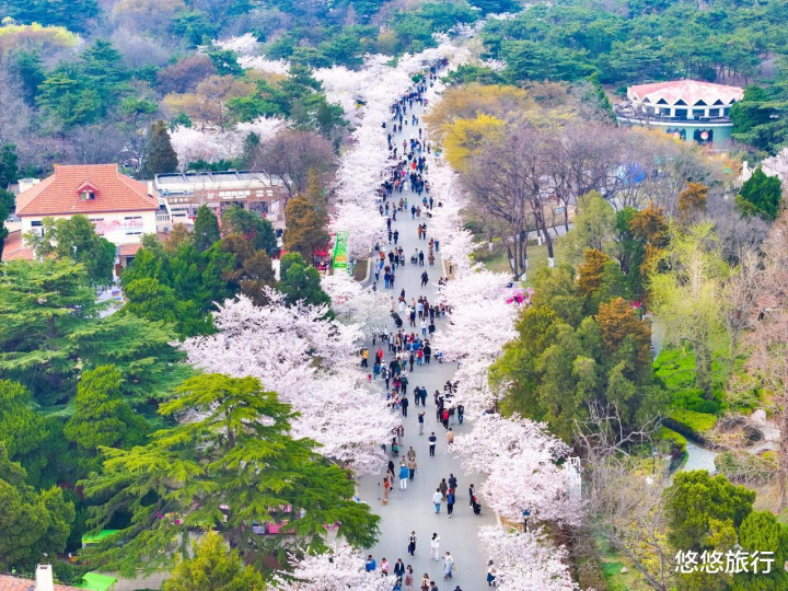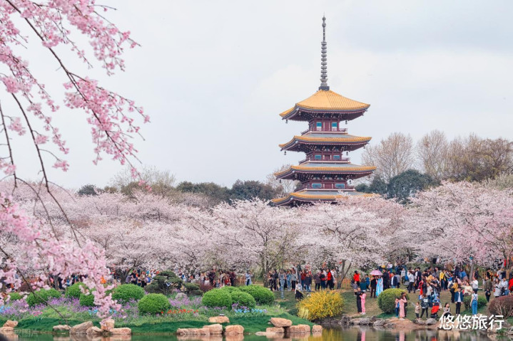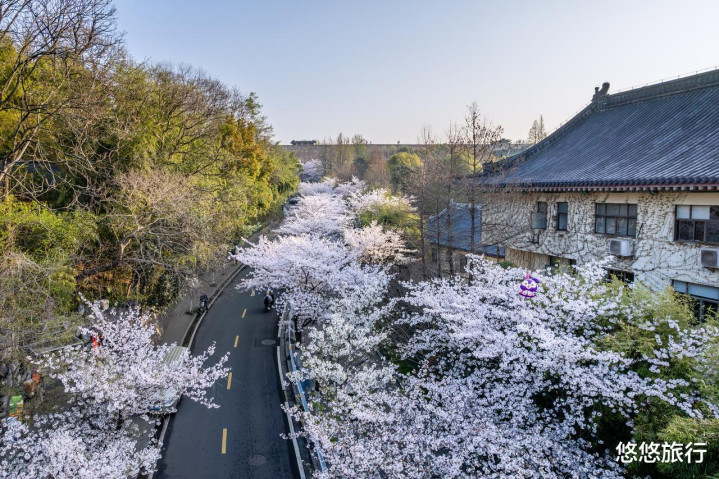 鸡鸣寺路,400米的樱花大路纵贯古寺,粉白花海与药师塔交相照映,是金陵春天的极致摒弃。
