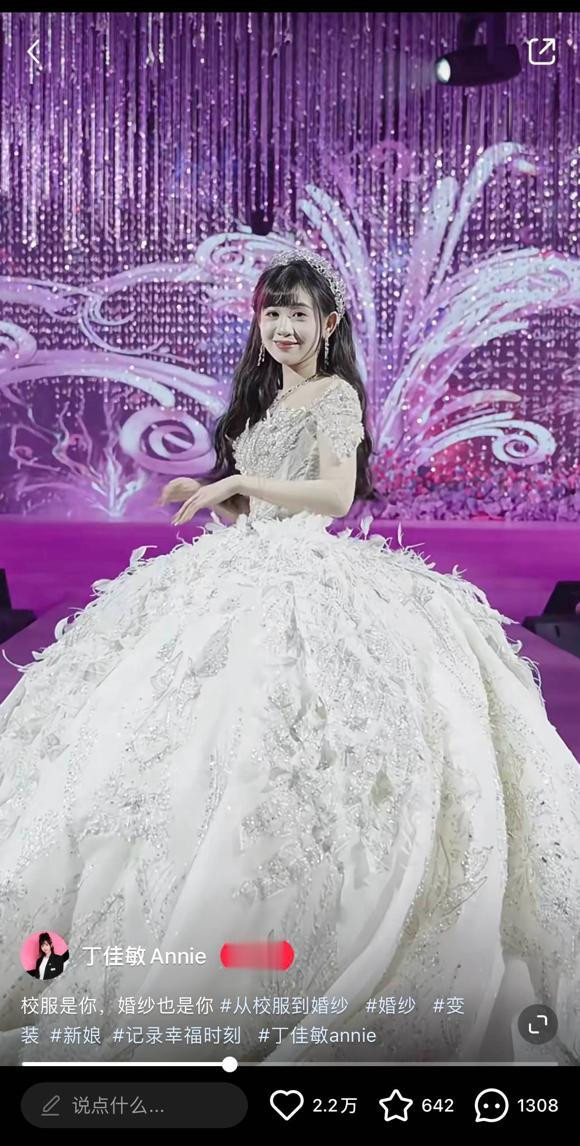 婚典今日,丁佳敏在酬酢平台上晒出视频,配文是“征服是你,婚纱亦然你”,甜度爆表。