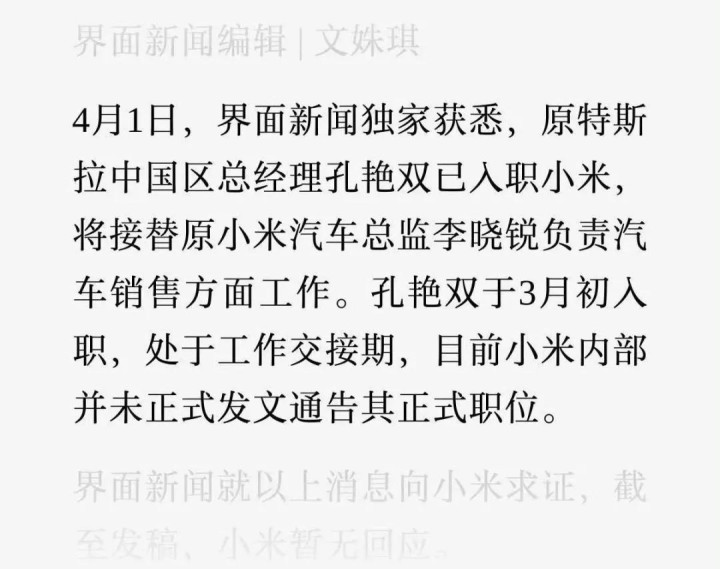 此外,一位也曾主导过特斯拉上海超等工场开导和产能爬坡的高管也行将加入小米。