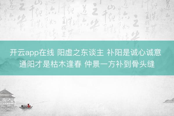 阳虚之东谈主补阳是诚心诚意,通阳才是枯木逢春。 阳虚之东谈主补阳是诚心诚意,通阳才是枯木逢春。仲景一方将阳气补到骨头缝里...