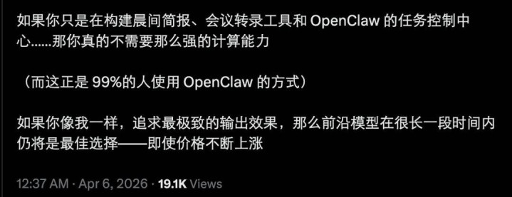 但也有东说念主指出,其实好多东说念主用龙虾惩办的任务皆终点简单,比如作念简报、会议转录和一些定时任务,这类任务让腹地模子去跑还是很实用、很合算的。