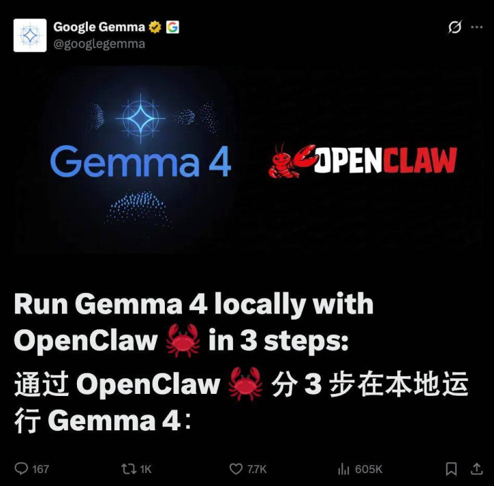 今天,谷歌 Gemma 官方也下场了,平直教全球怎样分三步把 Gamma 4 和龙虾连上。