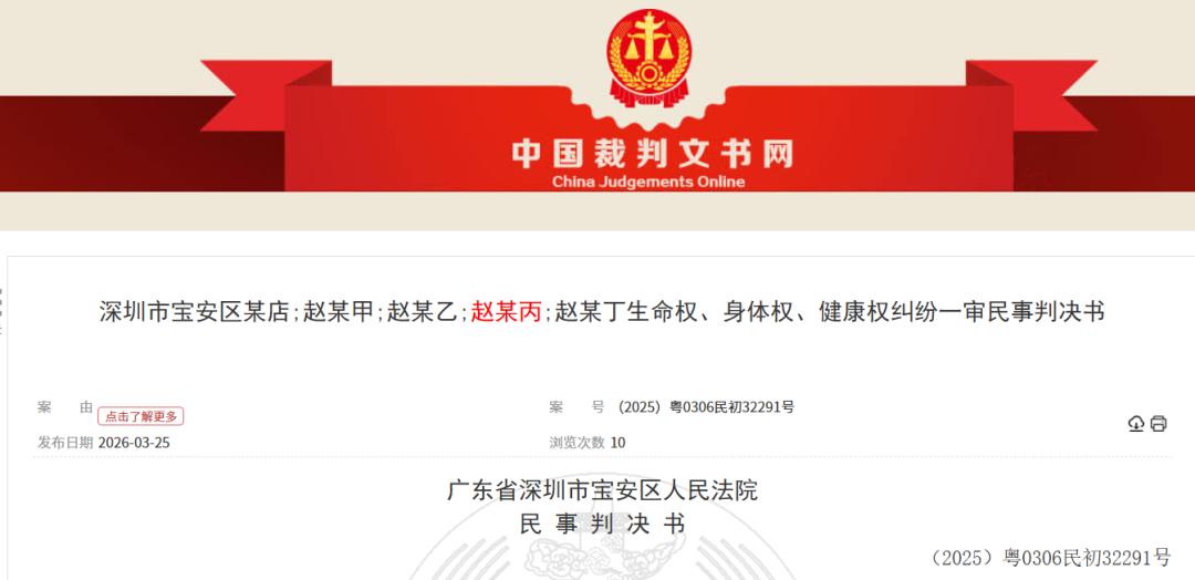 据中国裁判告示网,3月25日,广东深圳市宝安区东谈主民法院公布一审判决书。