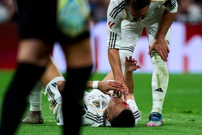 并非是他仍是十足康复的左膝,而是他的右眉和额头。在周五与吉罗纳(1-1)的西甲联赛中,姆巴佩在禁区内被中后卫维托尔·雷斯肘击,导致他倒地流血,皇骑兵医就地对其进行了处理。