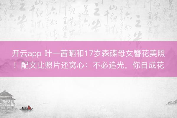 1月24日,叶一茜晒与女儿森碟簪花合照:“不必追光,你自成花!愿你的世界,永远如这头簪花,灿烂而自由。”母女俩美得让人眼...